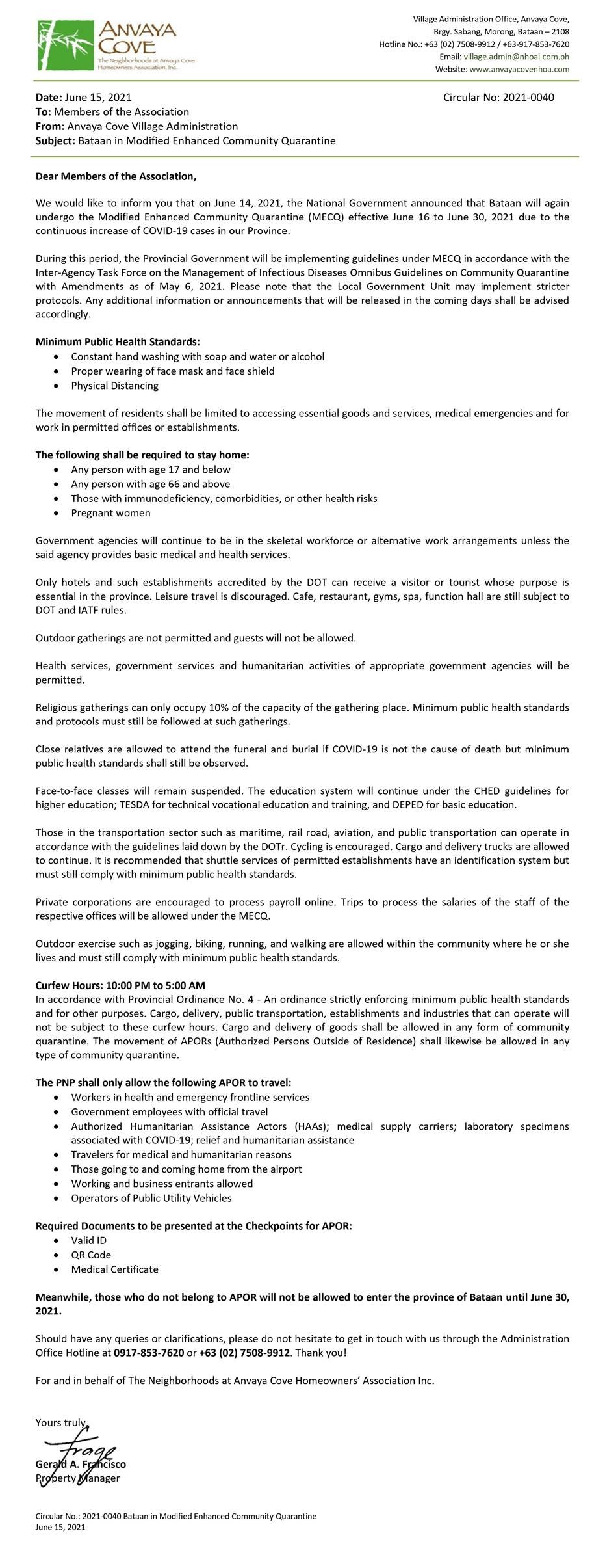 Circular 2021-0040 Bataan in Modified Enhanced Community Quarantine