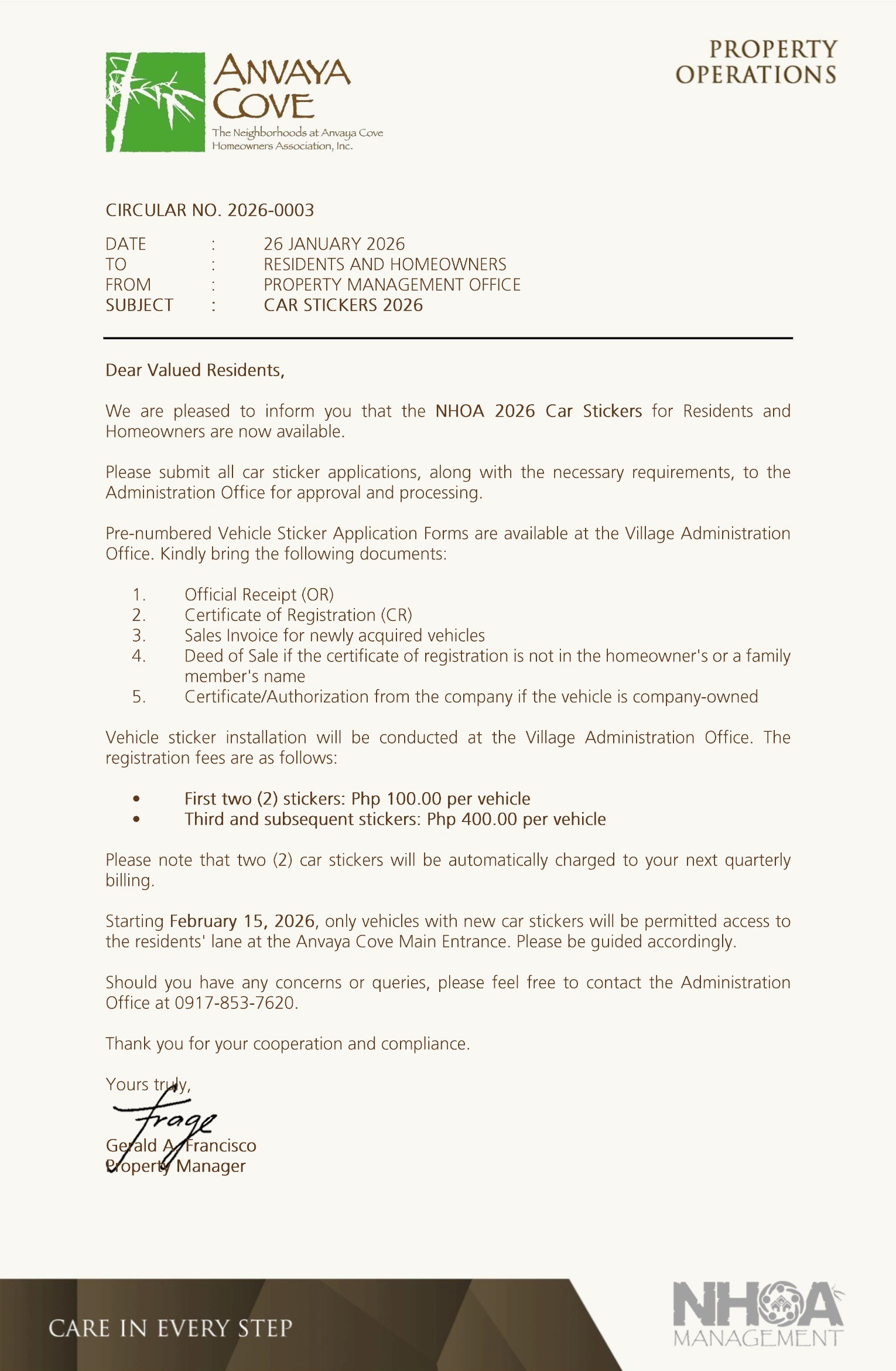 Circular 2026-0003 Car Stickers 2026