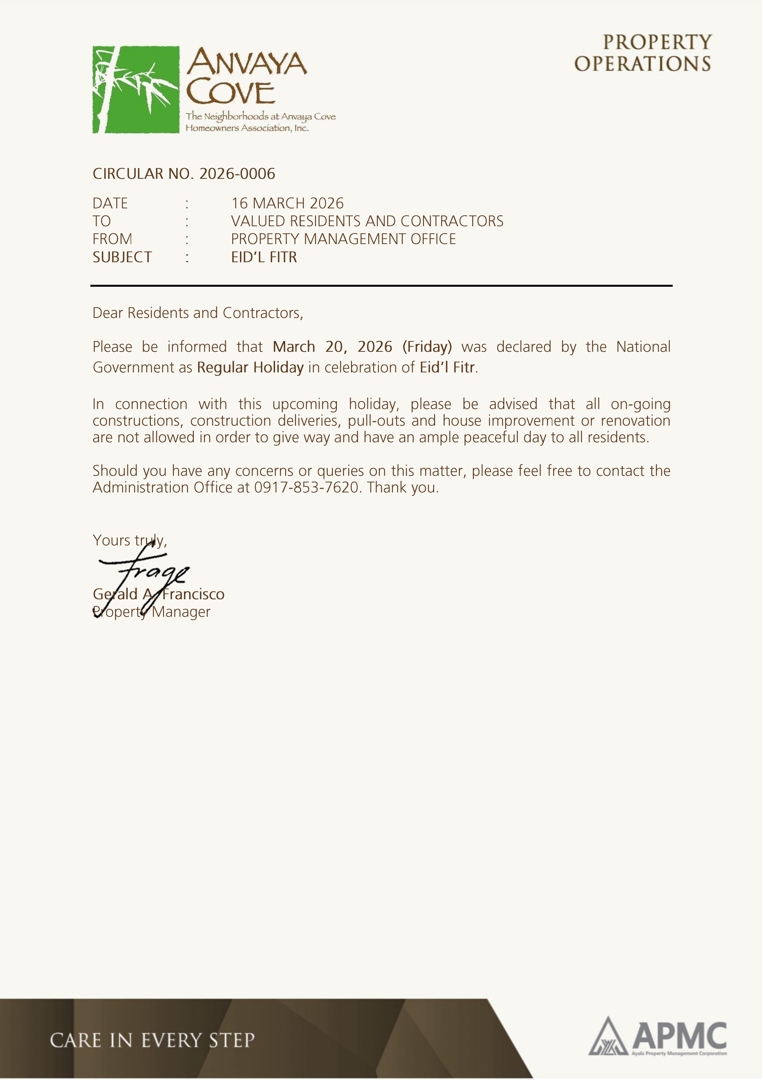 Circular 2026-0006 Eid'l Fitr