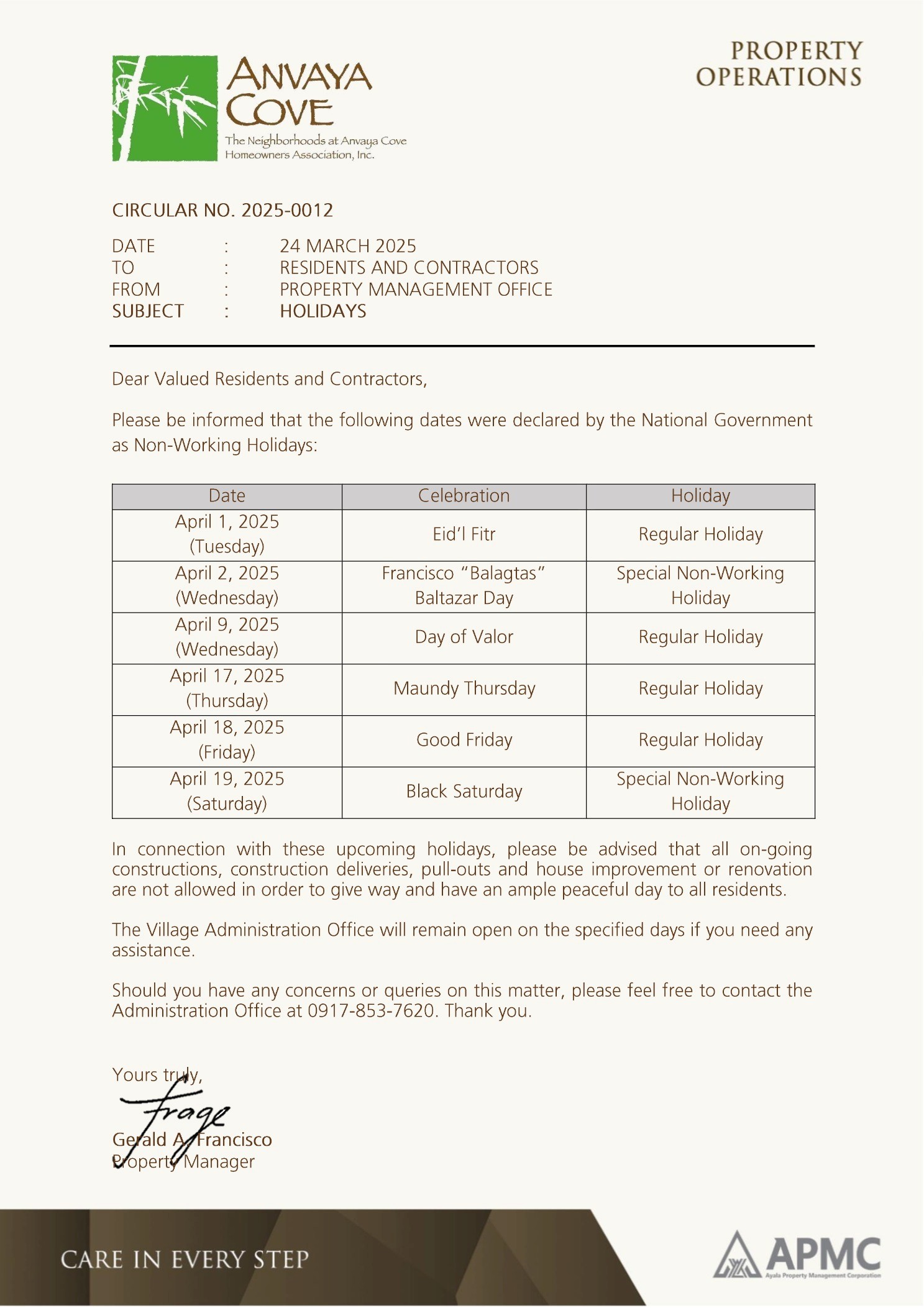 Should you have any concerns or queries on this matter, you may call Manila Water Philippine Ventures, Inc. at mobile number 0966-8221-9008.