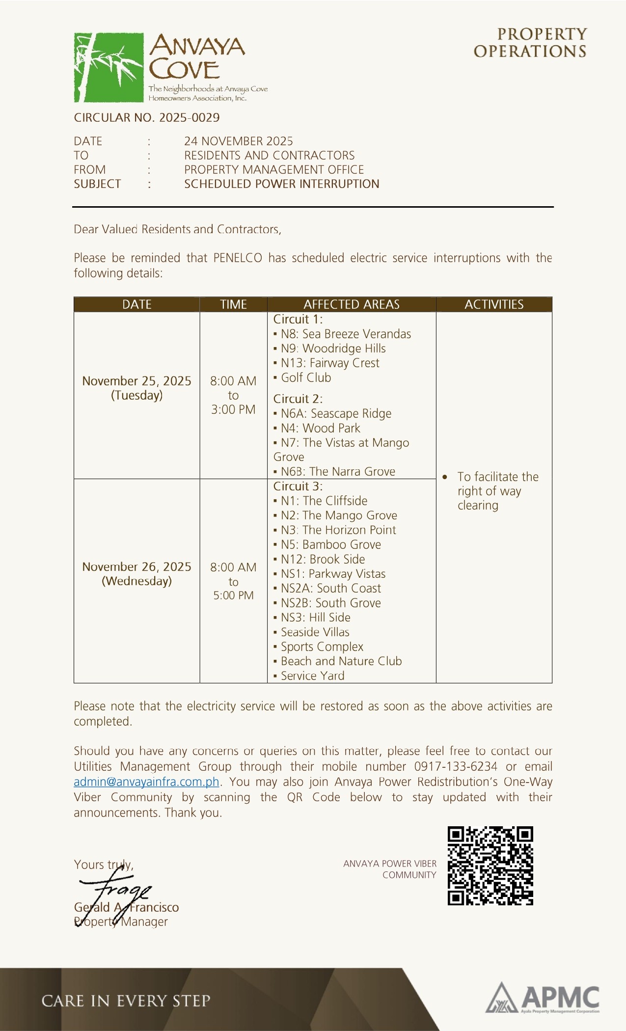 Circular 2025-0032 Scheduled Power Interruption - CANCELLED