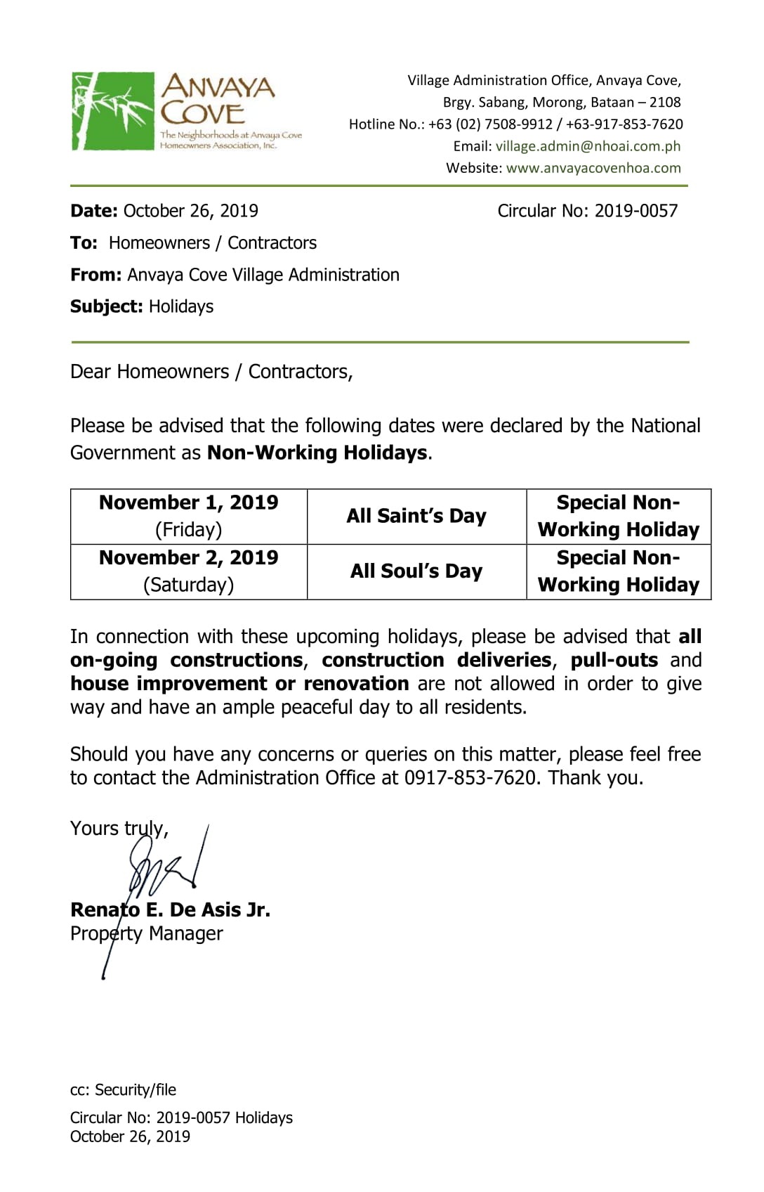 Circular 2026-0007 Holidays
