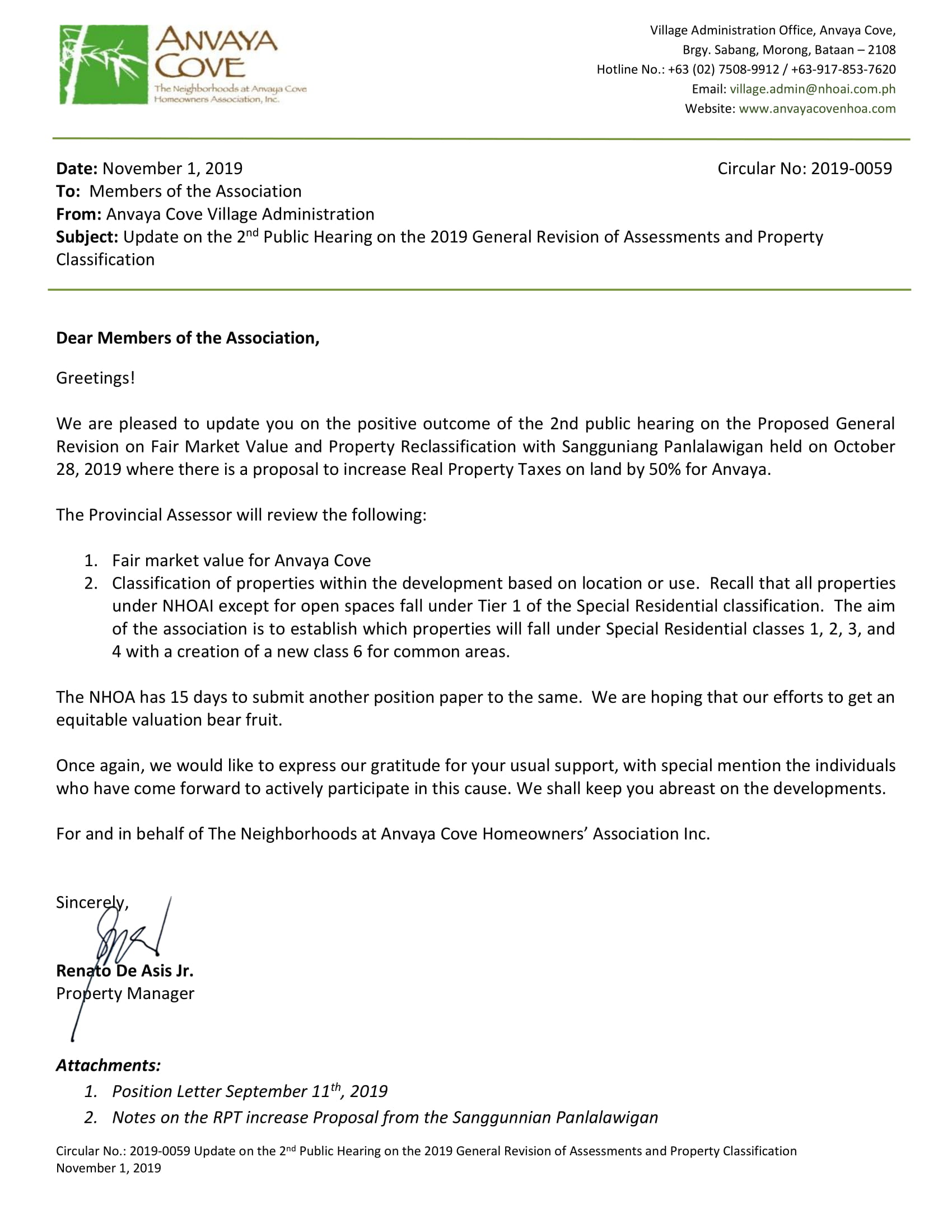 SUBJECT: Update on the 2nd Public Hearing on the 2019 General Revision of Assessments and Property Classification