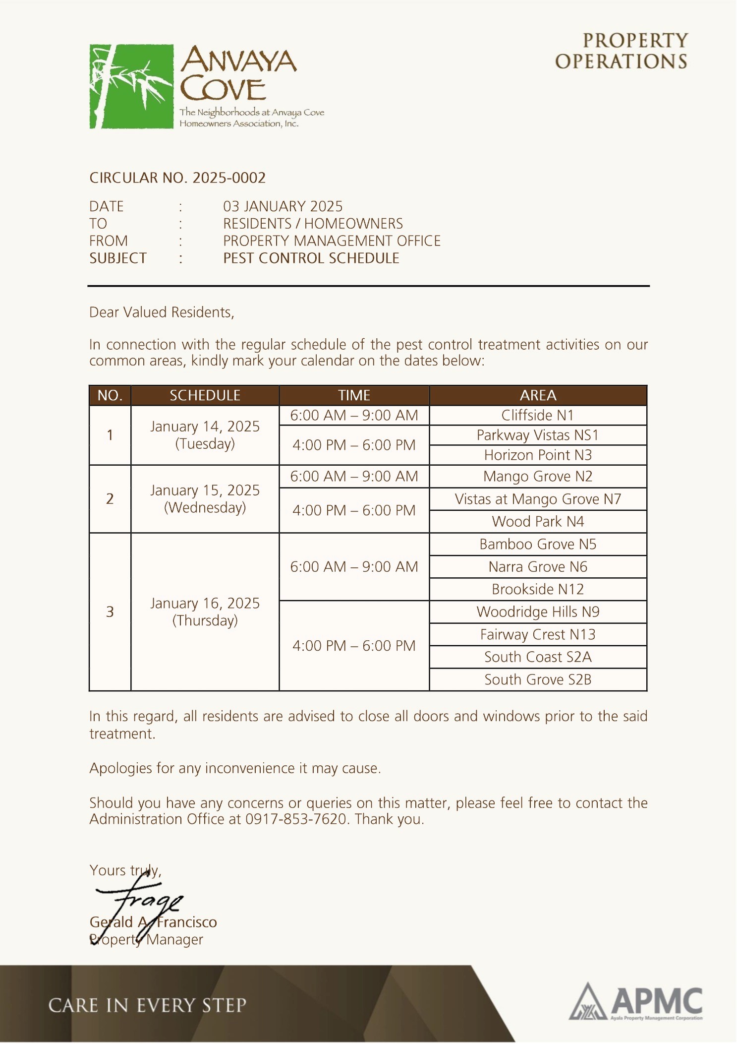 Jan 03 Circular 2025-0002 Pest Control Schedule Circular 2025-0002 Pest Control Schedule Previous Next