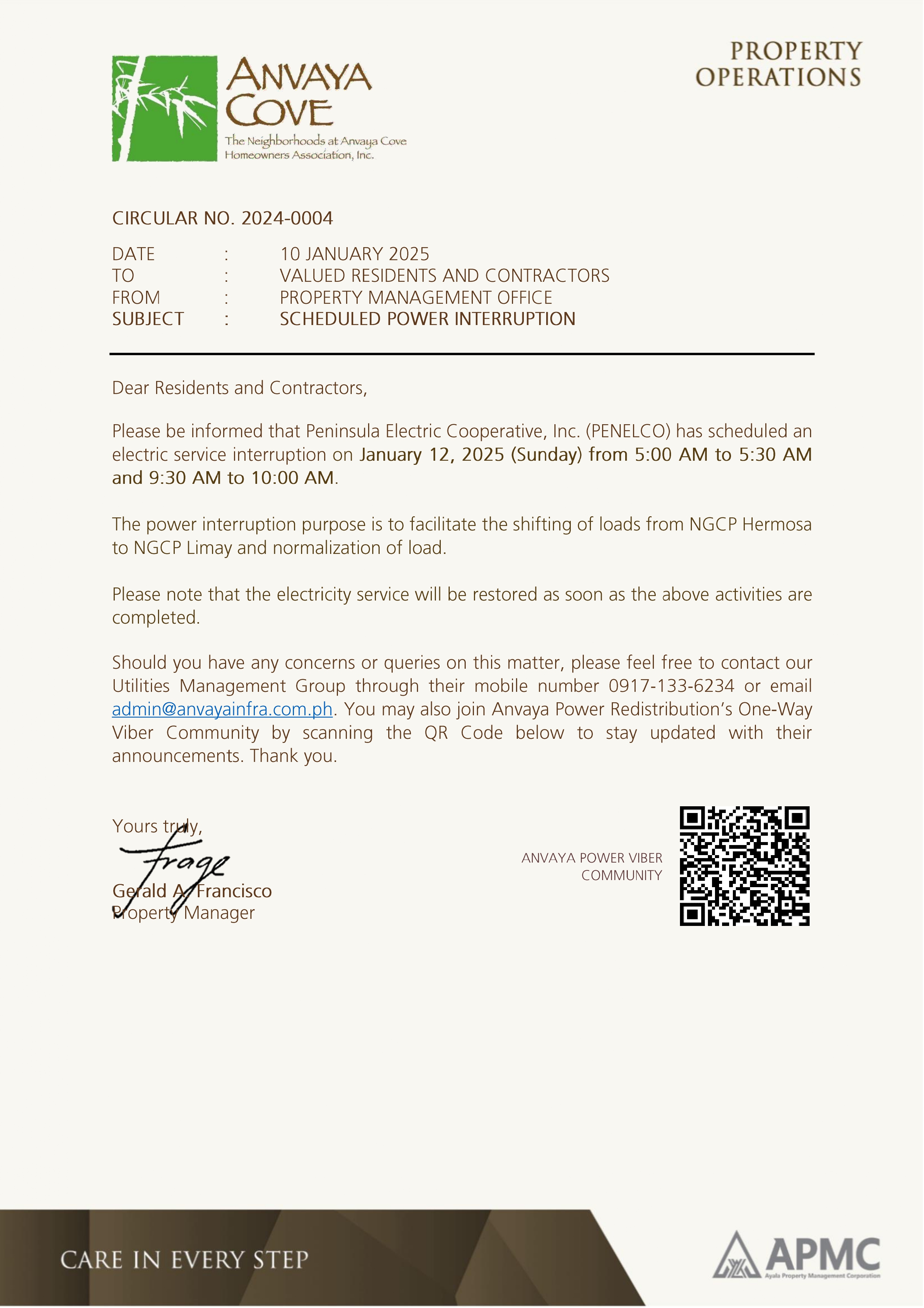 Jan 10 Circular 2025-0004 Scheduled Power Interruption Circular 2025-0004 Scheduled Power Interruption Previous Next