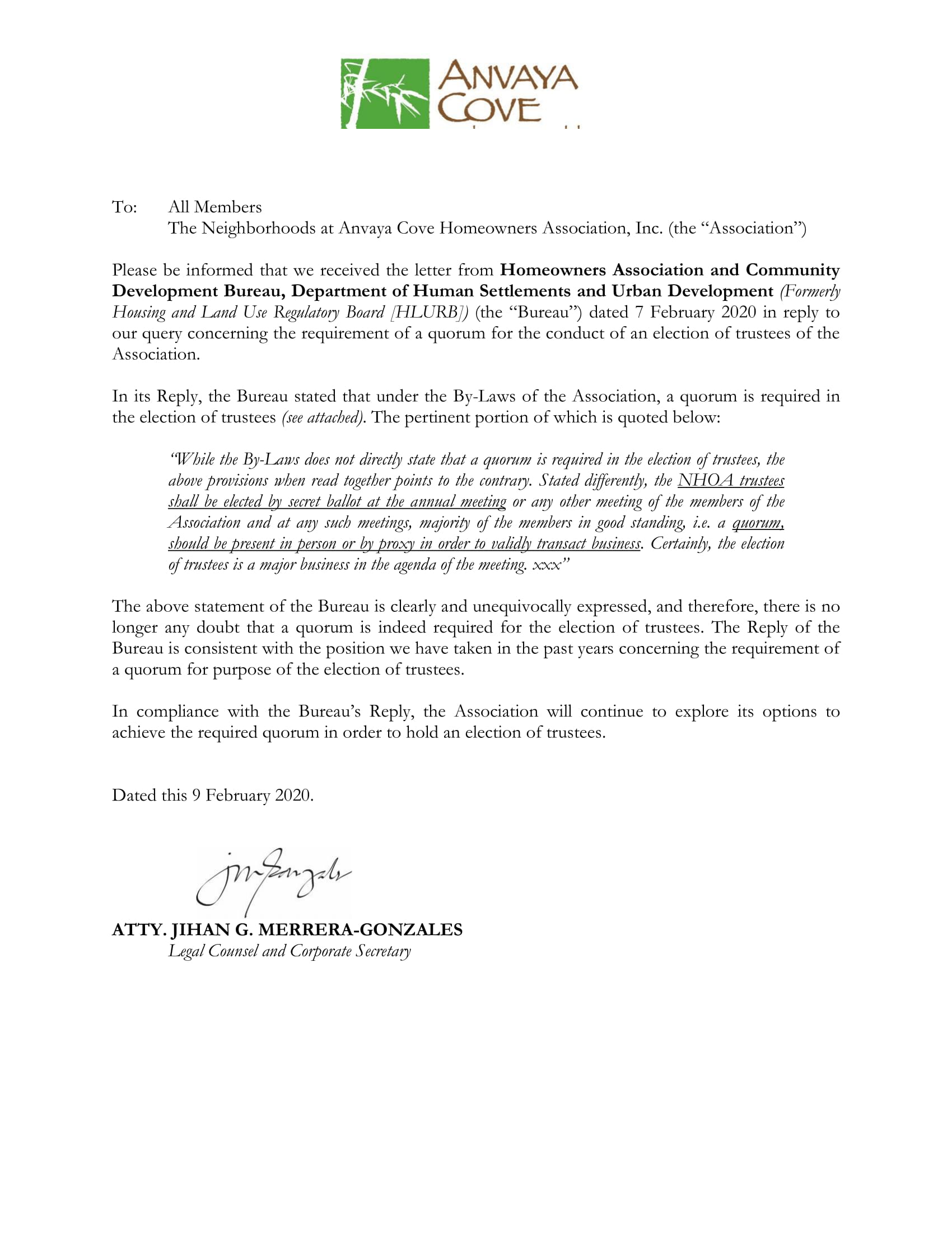 Attachment: HLURB_Reply_re_Quorum_in_Election_of_Trustees1.pdf